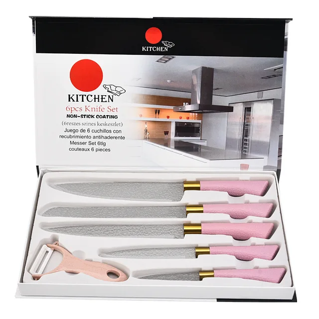 6 Pcs Horseshoe Handle Hammer Patter Custom Non-stick Coating Stainless Steel Chef Knife Set