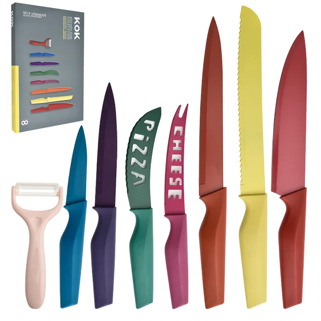 Hot Selling 8pcs Stainless Steel Non-stick Seven Rainbow Hippocampus Handle Eight Piece Chef Knife Sets