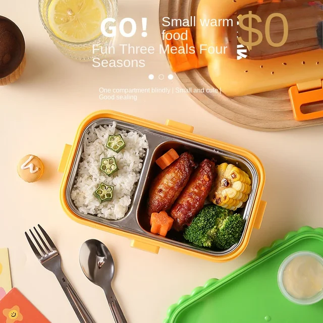 New Plastic/Stainless Steel Liner Microwavable Leak Proof Eco-friendly Portable School Creative Compartment Lunch Box