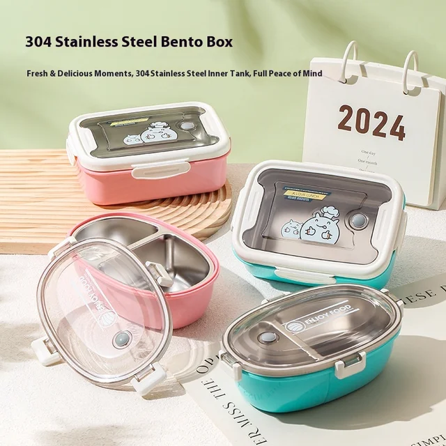 Cute Large Capacity Single-Layer Stainless Steel Lunch Box with PP Lid Bento Box for Office Students and Students